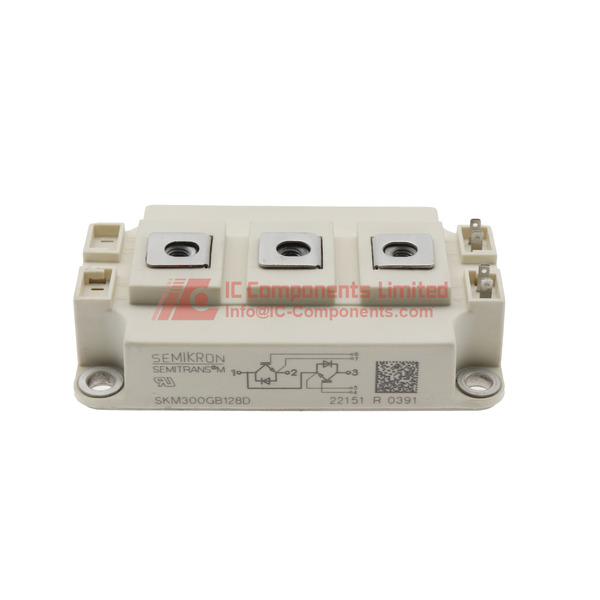 SKM300GB128D je specializovaný integrovaný obvod (IO) vyráběný společností Semikron, určený pro výkonné aplikace v oblasti výkonové elektroniky. Tento pokročilý polovodičový modul je navržen tak, aby řešil složité úkoly správy a přeměny energie v průmyslových a automobilových systémech.